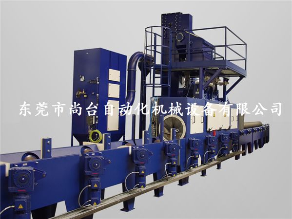上海尚台为江苏无锡某化工装备公司独创设计制造钢管内壁自动喷丸涂油生产线,该套自动喷丸涂油生产线具有技术先进、生产运行稳定可靠、高效环保等诸多优点。