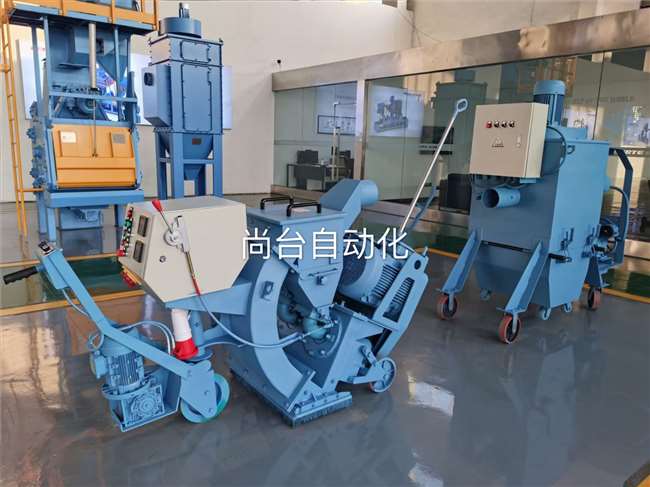 移动式抛丸机是通过机械的方法把丸料(钢丸或砂粒)